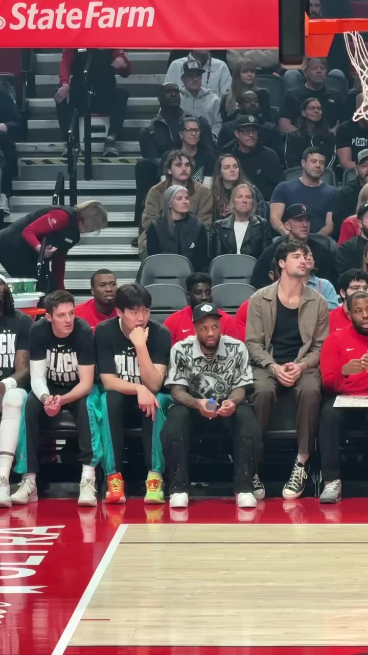 b体育官方网站-静静等待机会!小吧拍到杨瀚森坐在利拉德旁 认真观察场上局势