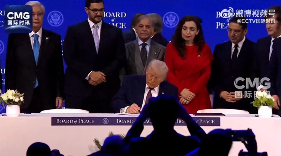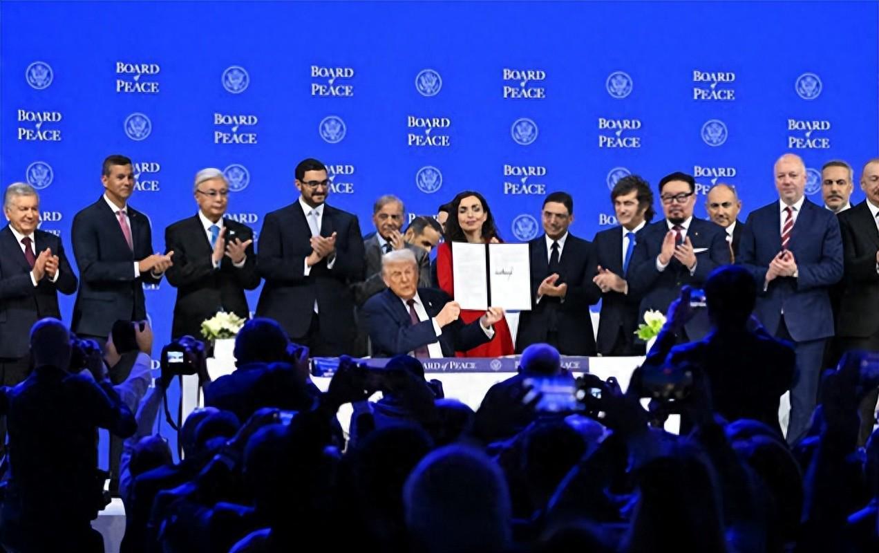 1月21日,在瑞士达沃斯的世界经济论坛上,特朗普亲自主持了一场签署仪式,19个国家代表当场签字,正式加入“和平委员会”。
